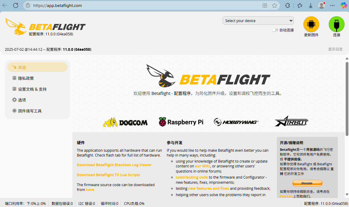 APP端会直接识别,网页端若无识别,需要在右上角点击I can't find my USB device ,在弹出的串行端口选择你的无人机。